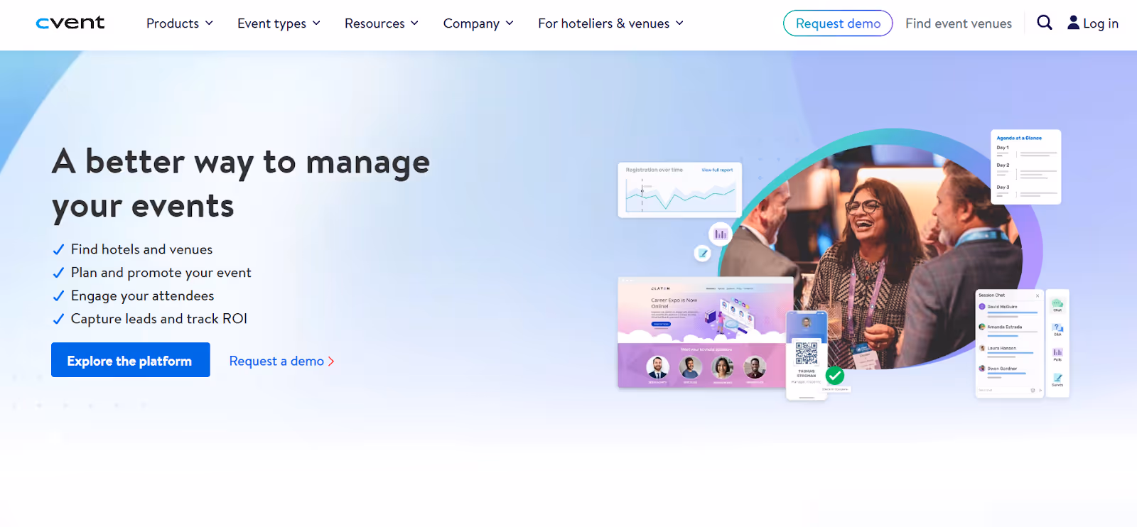 - Integration and Setup: Easily set up exhibitor profiles, integrate with top CRMs and marketing platforms, and export reports.